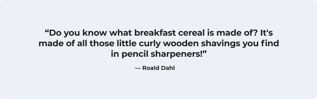 “Do you know what breakfast cereal is made of? It's made of all those little curly wooden shavings you find in pencil sharpeners!”